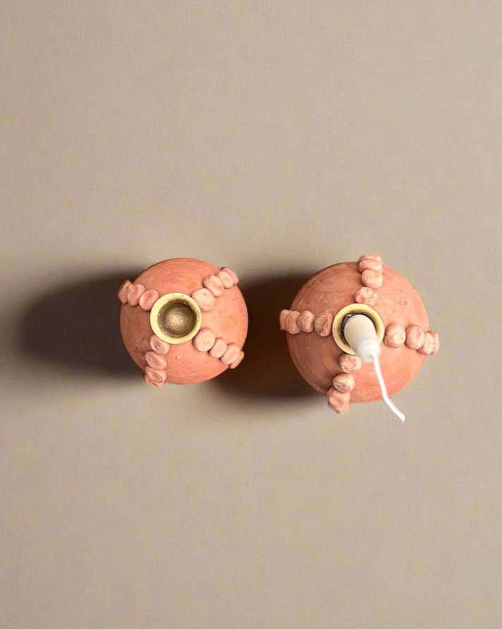 This terracotta taper candle holder is perfect for indoor decor and outdoor dinner parties. A removable metal taper cup allows for this to also be used as a bud vase.