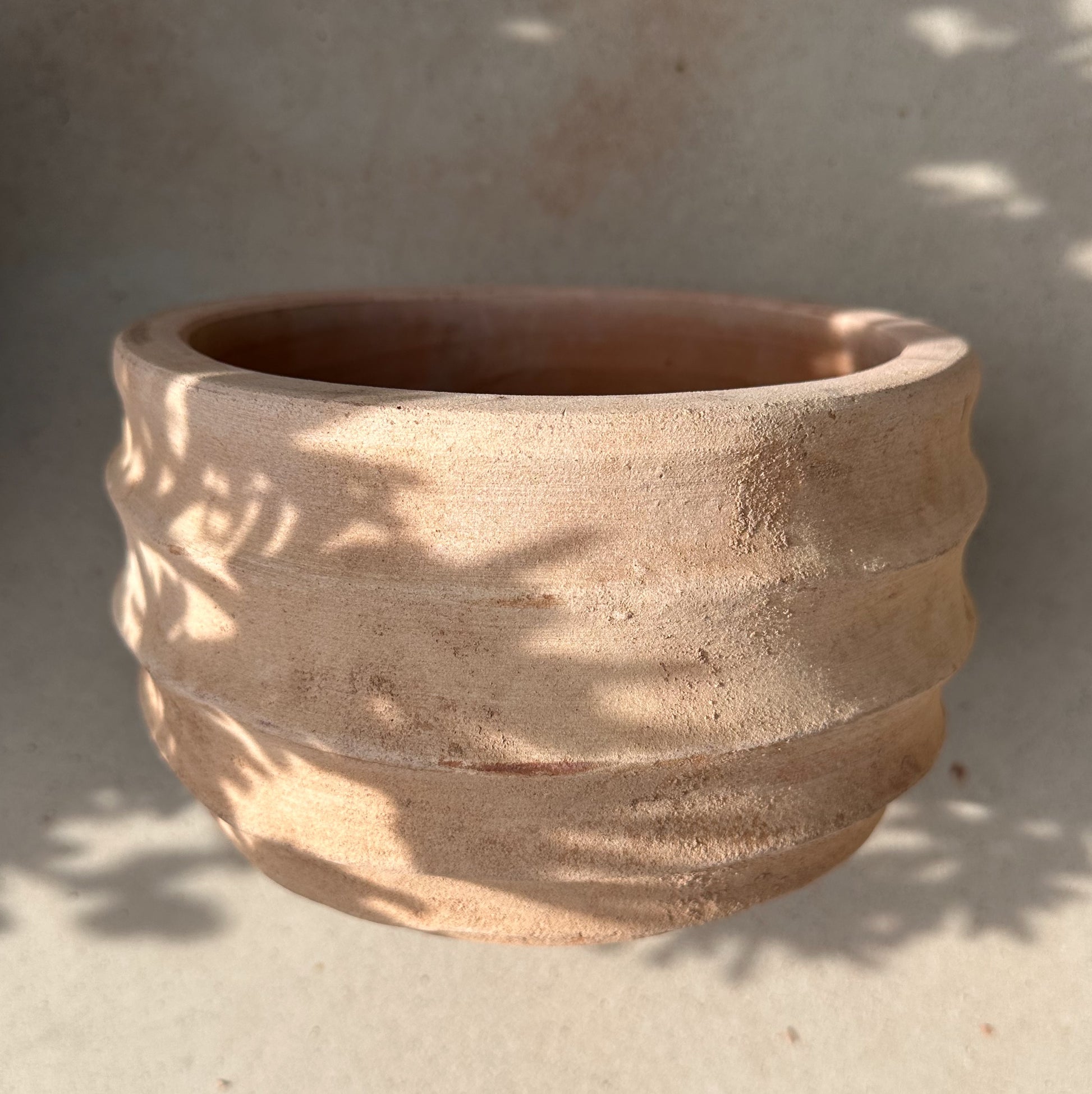 The Round Wave Terra Planter is the perfect pot for small plants. The natural light terracotta and waved texture look will elevate any outdoor or indoor space.